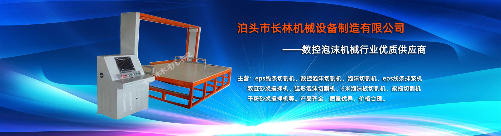 泊頭市長(zhǎng)(zhǎng)林機(jī)(jī)械設(shè)(shè)備制造有限公司座落于河北省泊頭市開發(fā)(fā)區(qū)(qū),地處北京、天津、濟(jì)(jì)南、石家莊中心位置。京滬高速、京滬鐵路、106國(guó)道、104國(guó)道穿行于本市,交通便利。 本公司是集多功能數(shù)(shù)控泡沫切割機(jī)(jī)的自主研發(fā)(fā)、生產(chǎn)(chǎn)、銷售和服務(wù)(wù)于一體的企業(yè)(yè),eps線條設(shè)(shè)備,數(shù)(shù)控泡沫切割機(jī)(jī),發(fā)(fā)泡陶瓷切割機(jī)(jī),eps線條切割機(jī)(jī)銷往全國(guó)各地,并開辟了國(guó)際合作的廣闊渠道。創(chuàng)(chuàng)新不斷的長(zhǎng)(zhǎng)林?jǐn)?shù)控機(jī)(jī)械有限公司經(jīng)(jīng)過幾年的不斷研究,完善了建筑裝飾構(gòu)(gòu)件的配套設(shè)(shè)備和自動(dòng)(dòng)化設(shè)(shè)備,由過去手工生產(chǎn)(chǎn)到半自動(dòng)(dòng)生產(chǎn)(chǎn)發(fā)(fā)展到現(xiàn)(xiàn)在的CNC控制的全自動(dòng)(dòng)零誤差數(shù)(shù)控泡沫切割機(jī)(jī)床。不但讓客戶在交貨期上面爭(zhēng)(zhēng)取了時(shí)(shí)間而且···